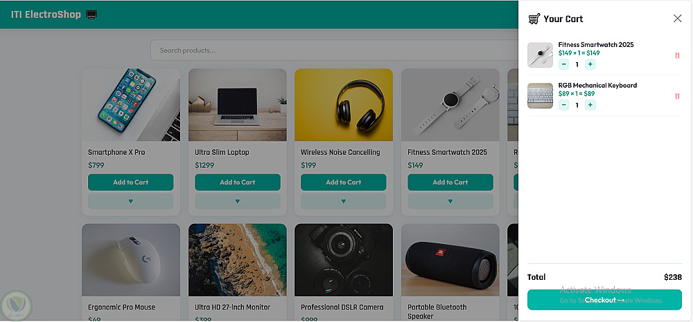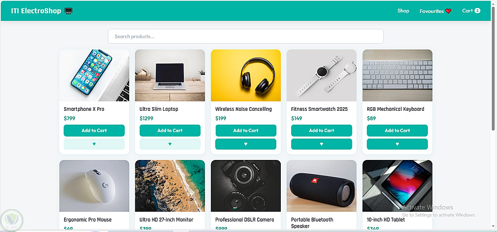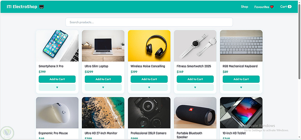 قمت بتصميم وتطوير موقع تجارة إلكترونية كامل لمتجر إلكترونيات باستخدام HTML و CSS و JavaScript فقط — بدون أي frameworks.