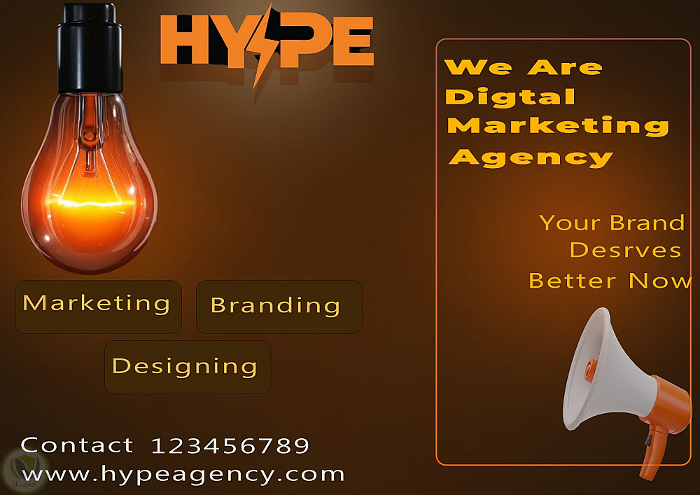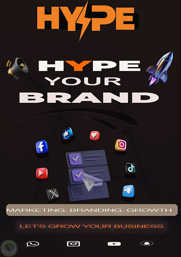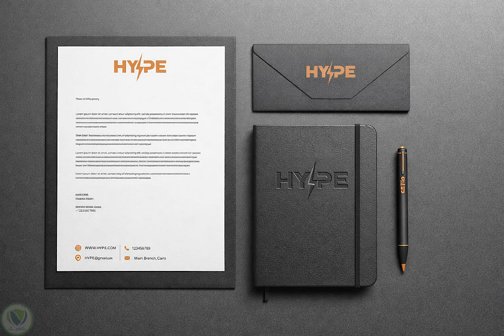 تصميم هوية بصرية شاملة لوكالة "HYPE" الرقمية، تعكس مفاهيم السرعة والابتكار. تم دمج رمز "البرق" في الشعار ليرمز إلى القوة والأداء السريع.