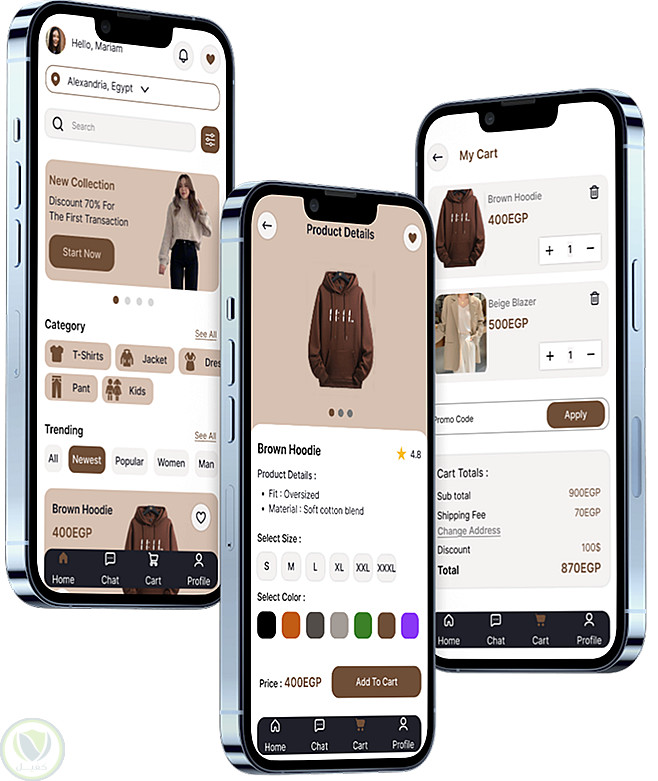 يركز التصميم على تقديم تجربة تسوق سلسة من خلال تسهيل عملية الطلب، وتوفير وسائل دفع آمنة، بالإضافة إلى إمكانية تتبع الطلبات بشكل فوري، مما يضمن تجربة مريحة للمستخدم من لحظة التصفح وحتى استلام المنتج.