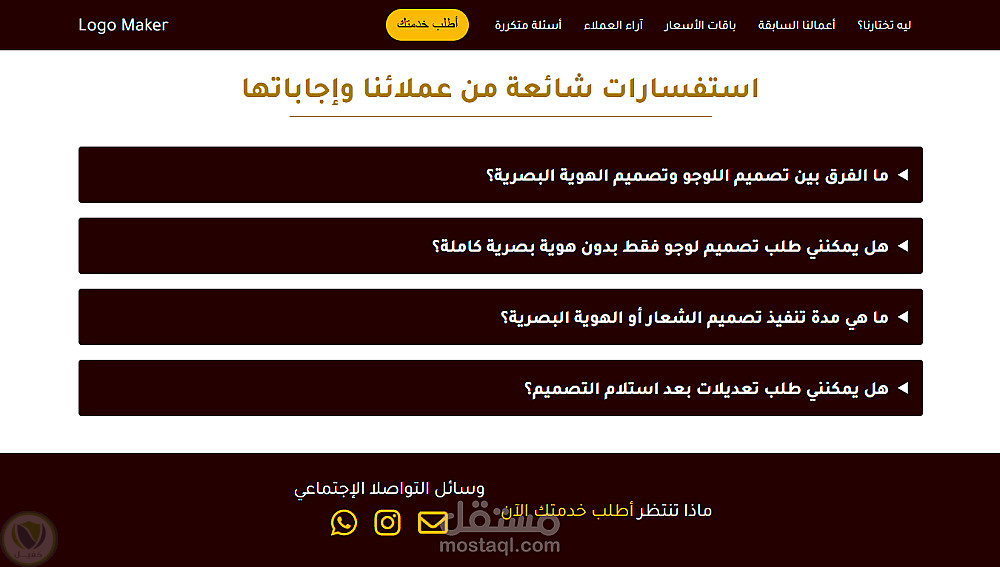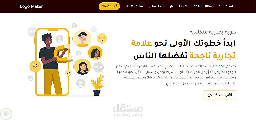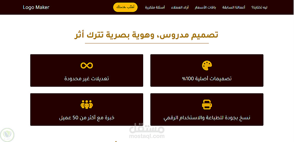 صفحة هبوط احترافية لخدمة تصميم لوجو وهوية بصرية