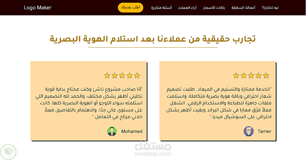 قسم لآراء العملاء (Testimonials).