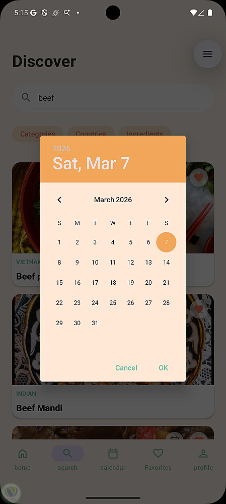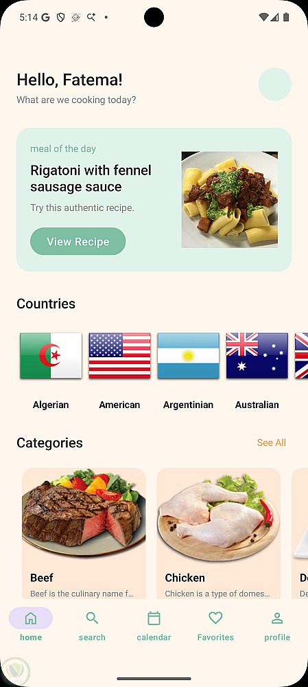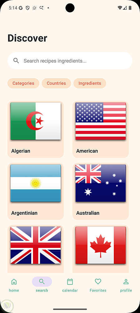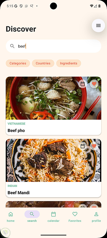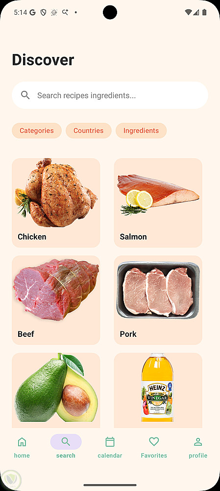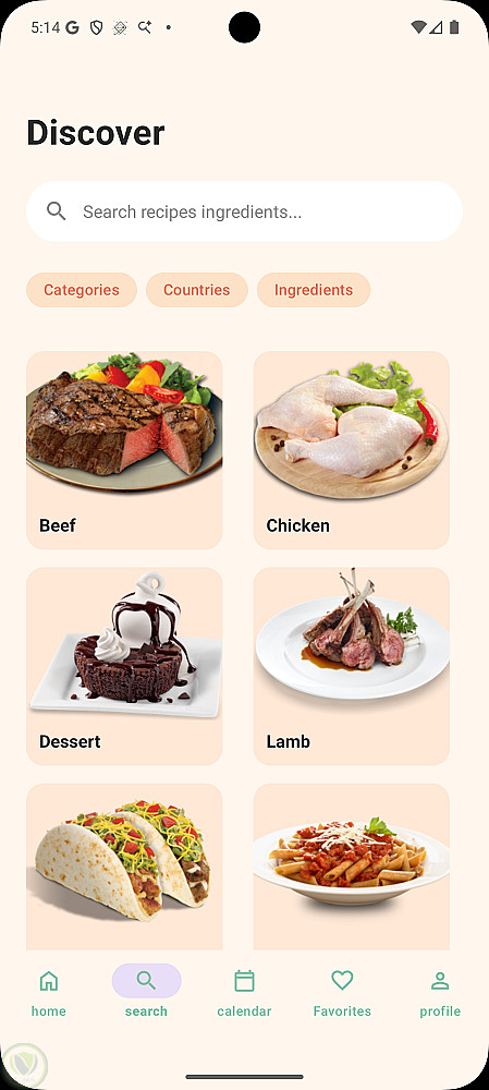 ابليكيشن لعرض وجبات حسب الدول او المكونات او الفئه يمكنك البحث باسم الاكله