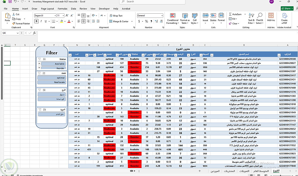صممت نظاماً احترافياً على الإكسل لإدارة مراقبة المخزون وسلاسل الإمداد، يتميز بالآتي:
