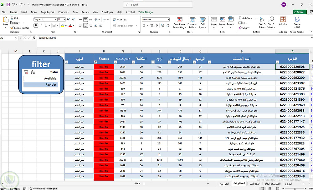 نظام إدارة المشتريات المركزي وتحليل السيولة المخزنية للشركة ككل