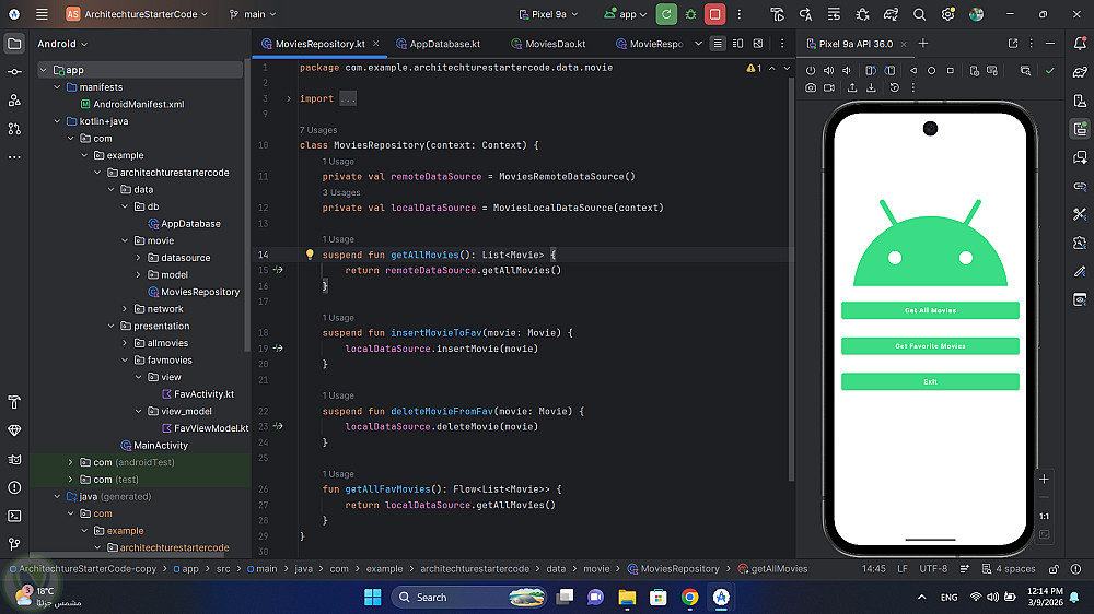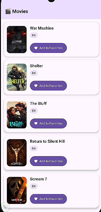 تطبيق أندرويد لعرض واستكشاف الأفلام باستخدام واجهة حديثة مبنية بـ Jetpack Compose. يتيح التطبيق للمستخدم تصفح الأفلام وعرض تفاصيلها وإضافة الأفلام المفضلة للوصول إليها بسهولة لاحقًا.