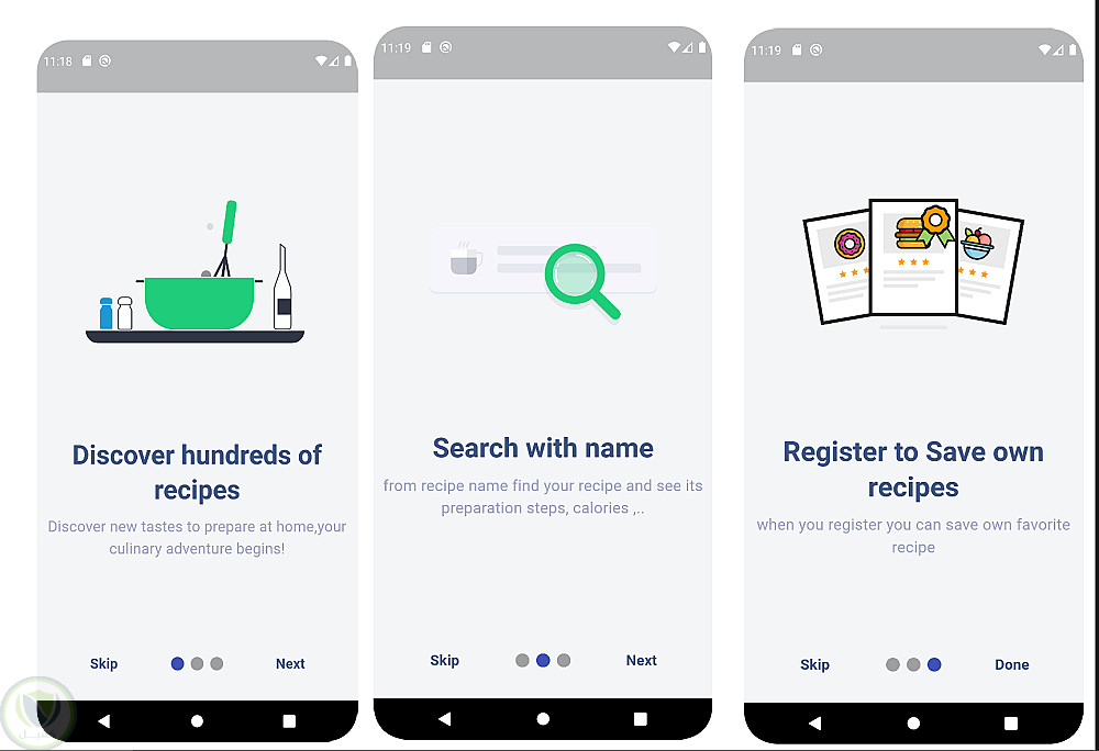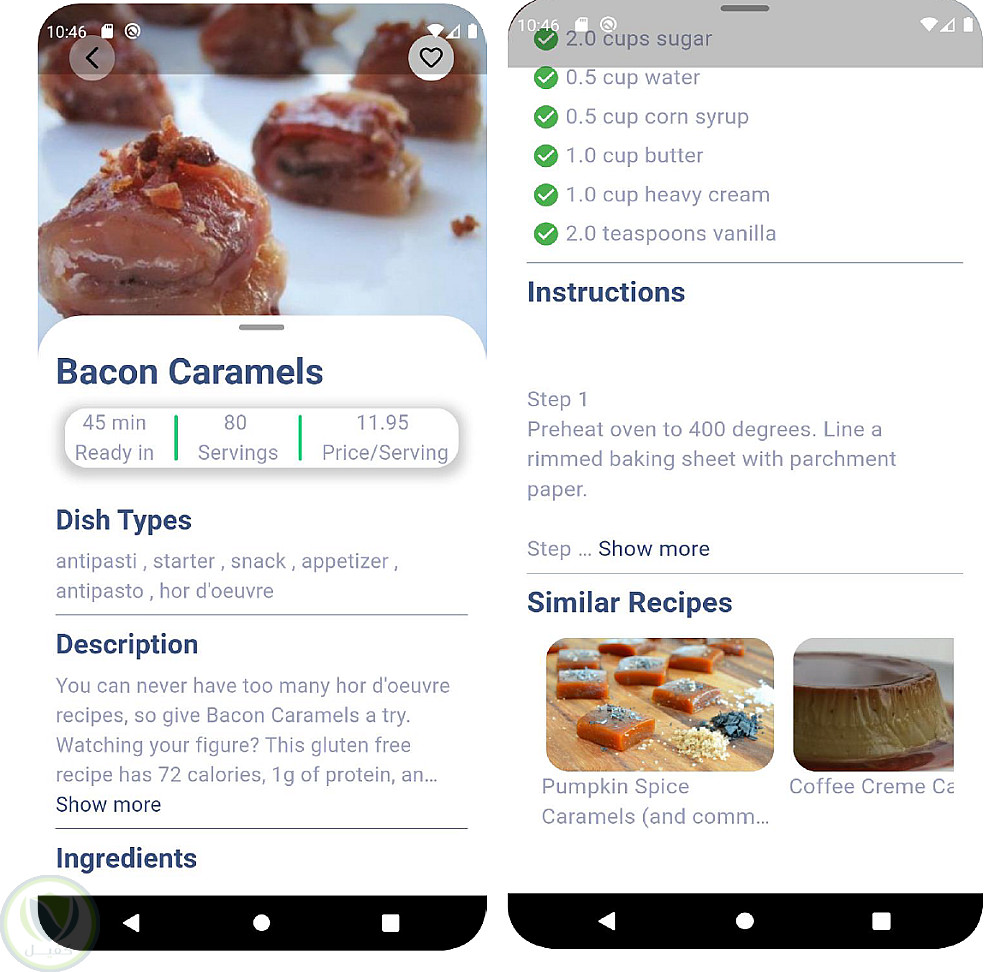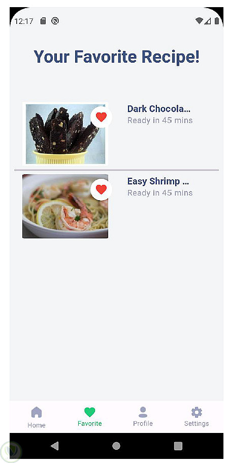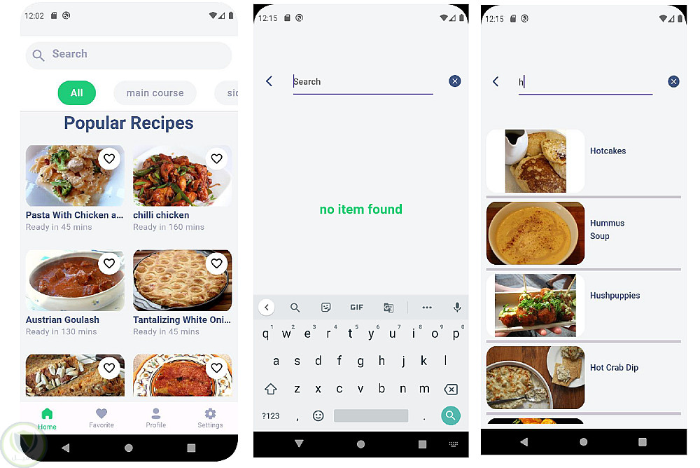 كما يتيح التطبيق إمكانية البحث عن عدد كبير من الوصفات باستخدام شريط بحث تفاعلي يعتمد على SearchDelegate في Flutter، مما يسهّل الوصول إلى الوصفات المطلوبة بسرعة. يمكن للمستخدم أيضًا إضافة الوصفات المفضلة، واختيار نمط التطبيق بين الوضع الفاتح والوضع الداكن.