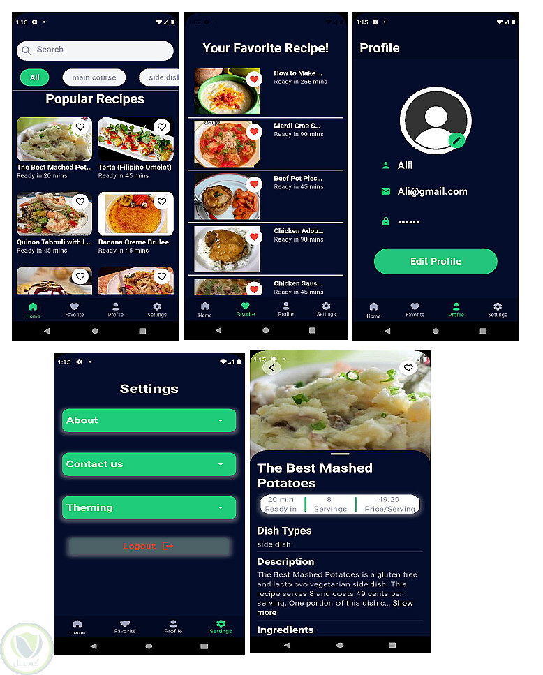 لهدف الرئيسي من هذا التطبيق لا يقتصر فقط على عرض خطوات تحضير الوجبات أو مكوناتها، بل يقدّم تجربة طهي متكاملة للمستخدم. يوفّر التطبيق معلومات إضافية مثل الوقت التقديري للطهي، عدد الحصص، بالإضافة إلى اقتراح وصفات مشابهة اعتمادًا على اختيارات المستخدم، وذلك من خلال التكامل مع Spoonacular API.