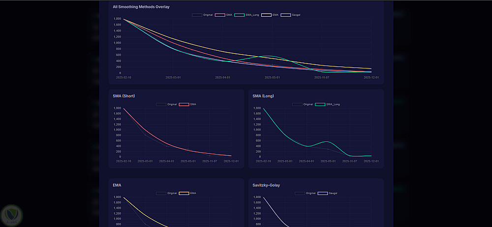 معالجة البيانات: تنظيف آلي للقيم المتطرفة وتنعيم الضوضاء باستخدام فلتر Savitzky-Golay.