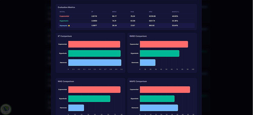 لوحة تحكم تفاعلية: واجهة ويب (JS/Chart.js) تعرض منحنيات الإنتاج، تحليل البواقي، والنتائج في الوقت الفعلي.