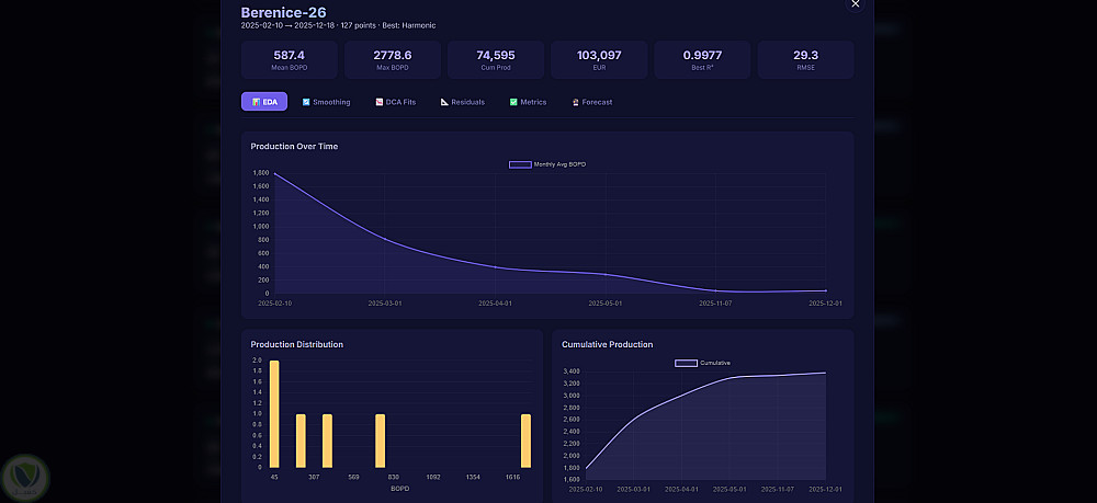 مشروع هندسي تقني متكامل لتحليل بيانات 200 بئر (أكثر من 276 ألف سجل) في حقلي KHAR و AEB-3E، بهدف أتمتة تقدير الاحتياطيات (EUR) والتنبؤ الاقتصادي.