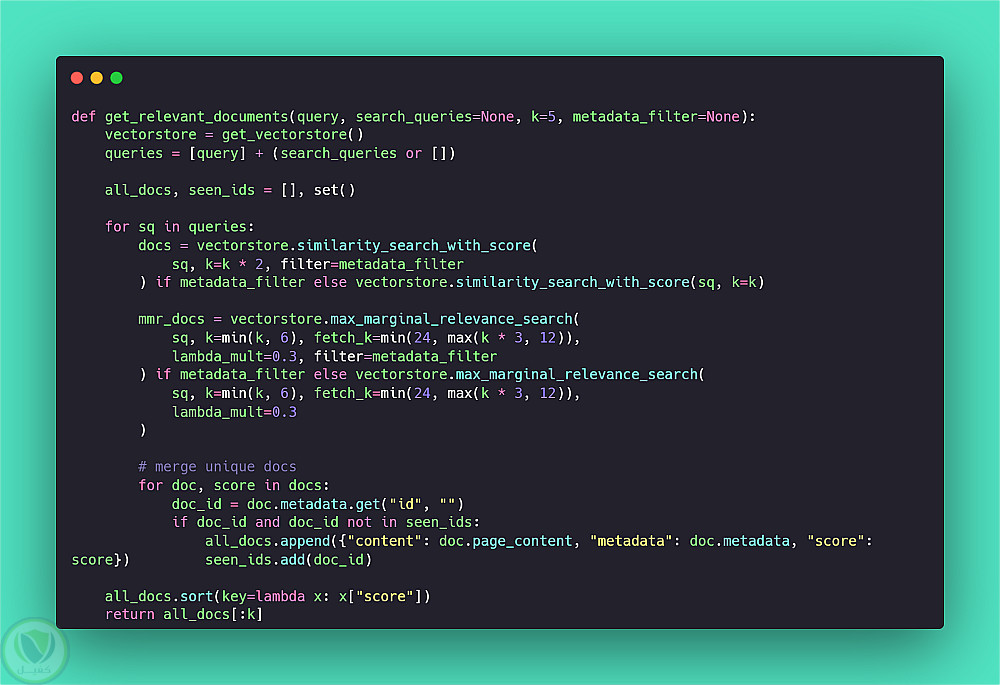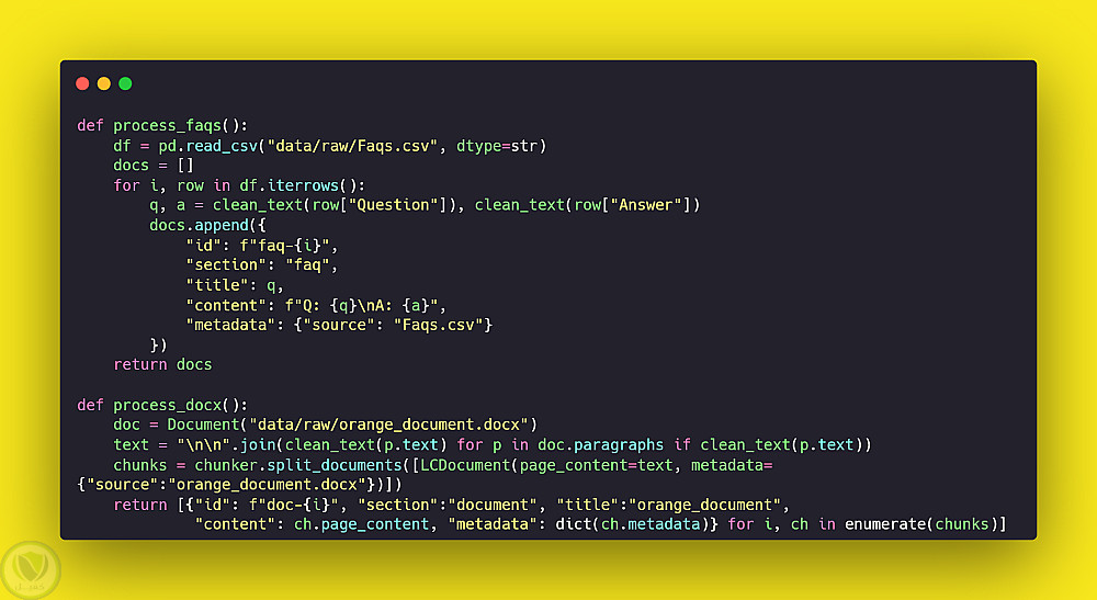 تقنيًا تم بناء Data Pipeline لتحويل ملفات CSV وDOCX إلى نصوص مجزأة، وتخزينها كـ Embeddings في ChromaDB مع استخدام Similarity Search وMMR وMetadata Filtering لتحسين الاسترجاع، إضافة إلى واجهة محادثة باستخدام Streamlit.