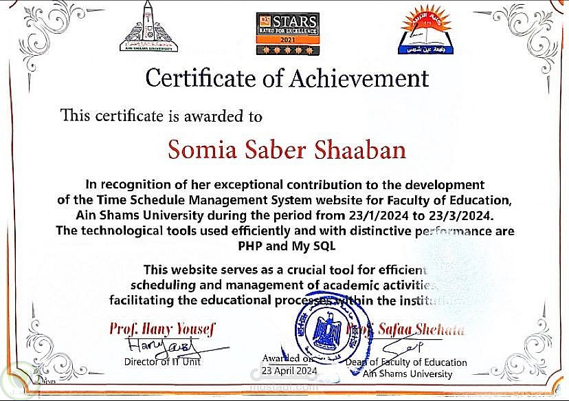 تعاونتُ مع جامعة عين شمس لتطوير نظام جدولة إلكتروني.