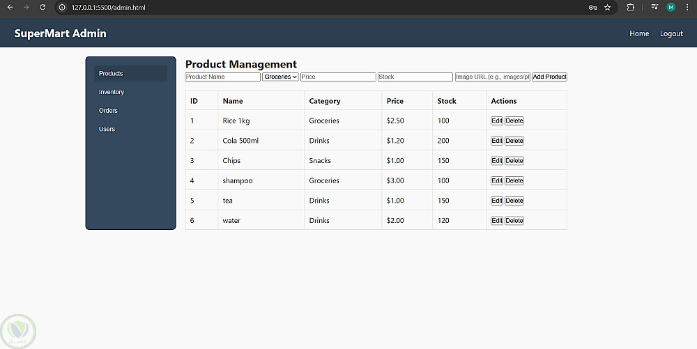 موقع إدارة سوبر ماركت (Supermarket Management Website)