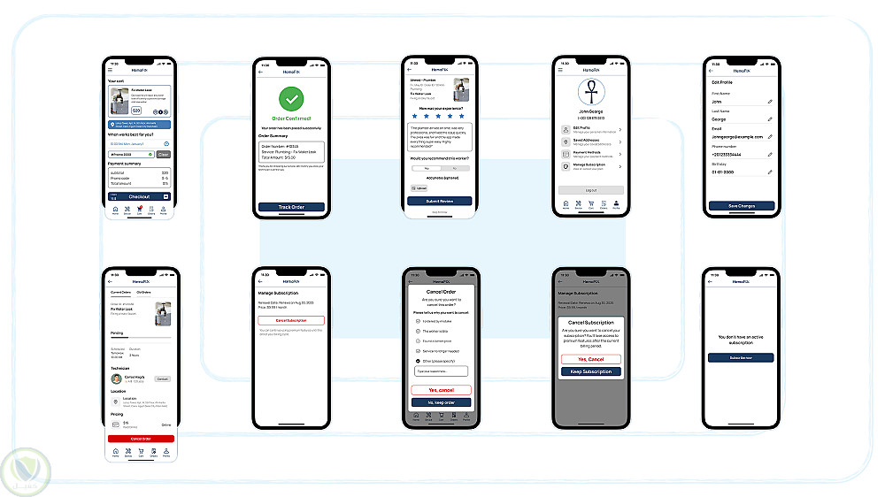 تصميم تطبيق HemoFIX لخدمات الصيانة المنـزلية والفنيين – تجربة مستخدم UI/UX متكاملة