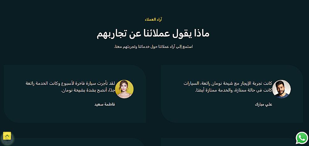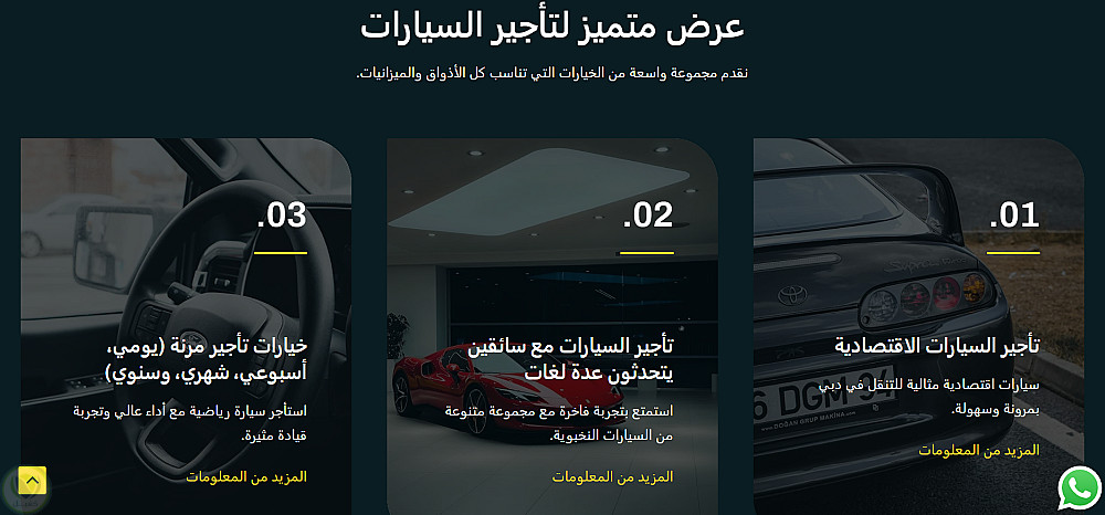 من اعمالنا (تصميم موقع شركة تأجير سيارات احترافي مع ربط مباشر بالواتساب)