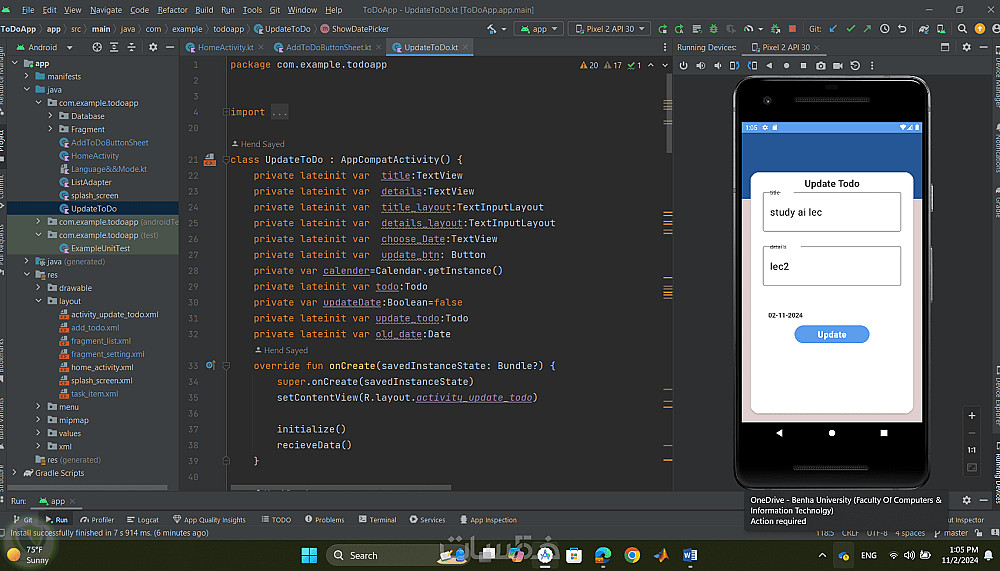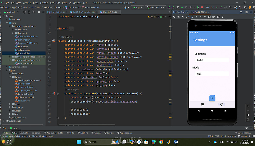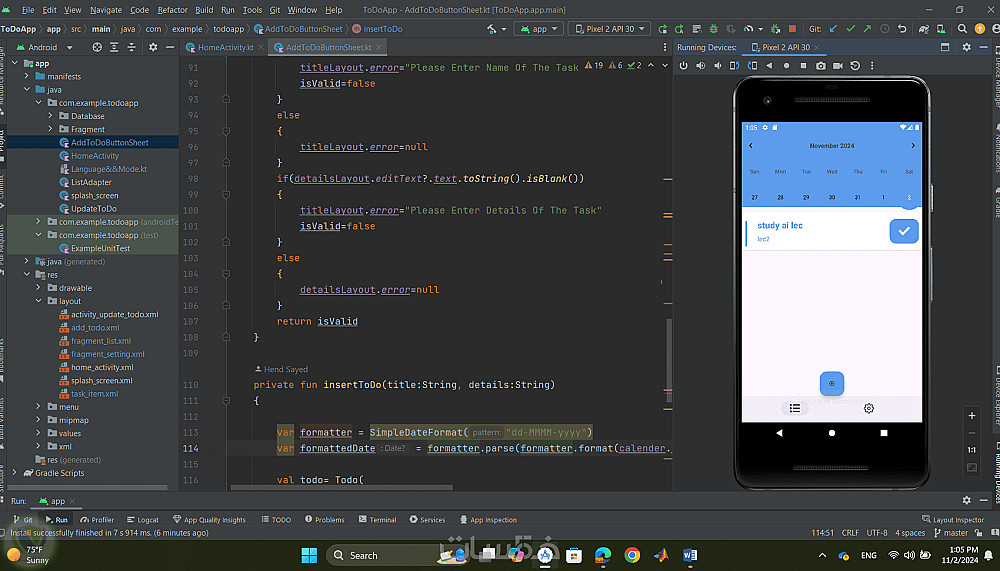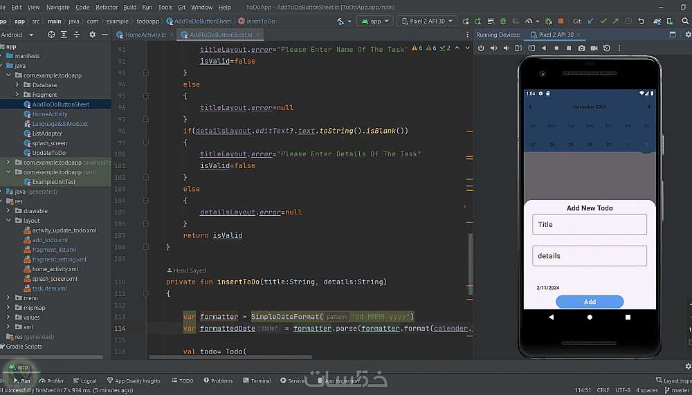 تطبيق اندرويد XML لحفظ المهام اليوميه ذو واجهه سهلة الاستخدام بلغه كوتلن .