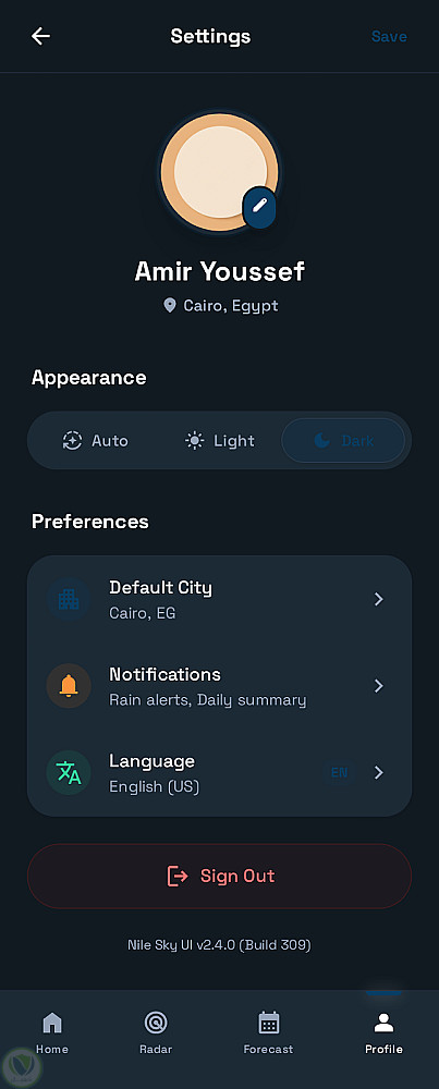 قمت بتطوير تطبيق Nimbus وهو تطبيق أندرويد لعرض حالة الطقس بطريقة حديثة وسهلة الاستخدام. تم بناء التطبيق باستخدام Kotlin و Jetpack Compose مع تصميم عصري يدعم الوضعين الفاتح والداكن.