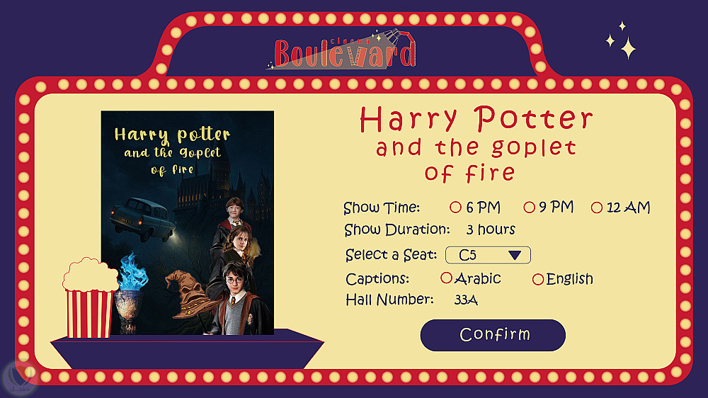 تصميم واجهة مستخدم لشاشة حجز سينيما (من داخل قاعة السينيما) + لوجو مميز