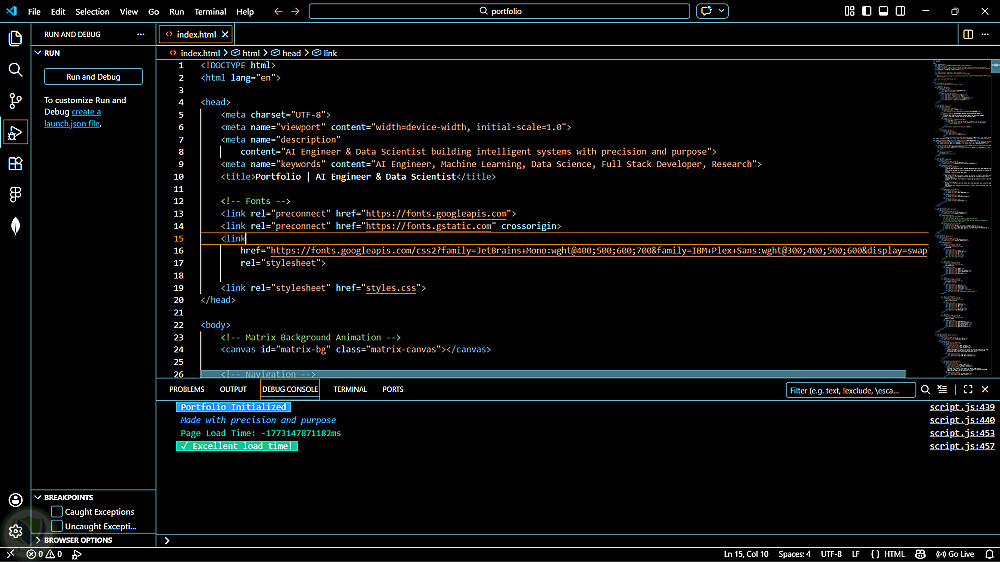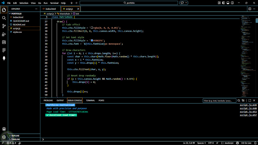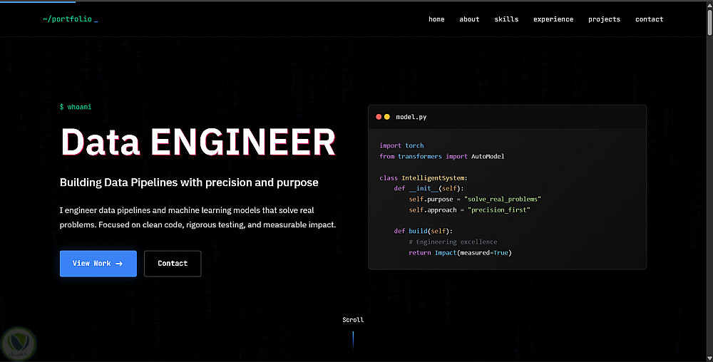 معرض أعمال شخصي مستضاف على GitHub Pages. يركز المشروع على تقديم تجربة مستخدم سلسة وتصميم متجاوب (Responsive Design)، مع استعراض لأهم التقنيات التي أتقنها والمشاريع التي قمت بتنفيذها خلال مسيرتي الدراسية والمهنية.