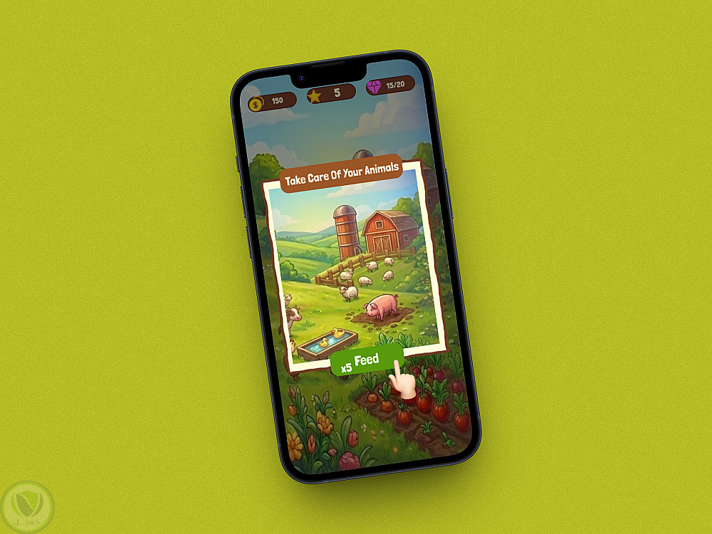تصميم تطبيق Farm Family بواجهة جذابة وسهلة الاستخدام، يشمل: