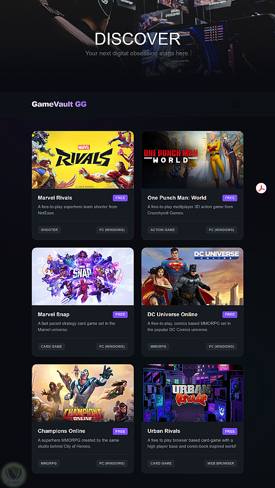 Games Website (GamesVault GG) — Interactive Games Catalog