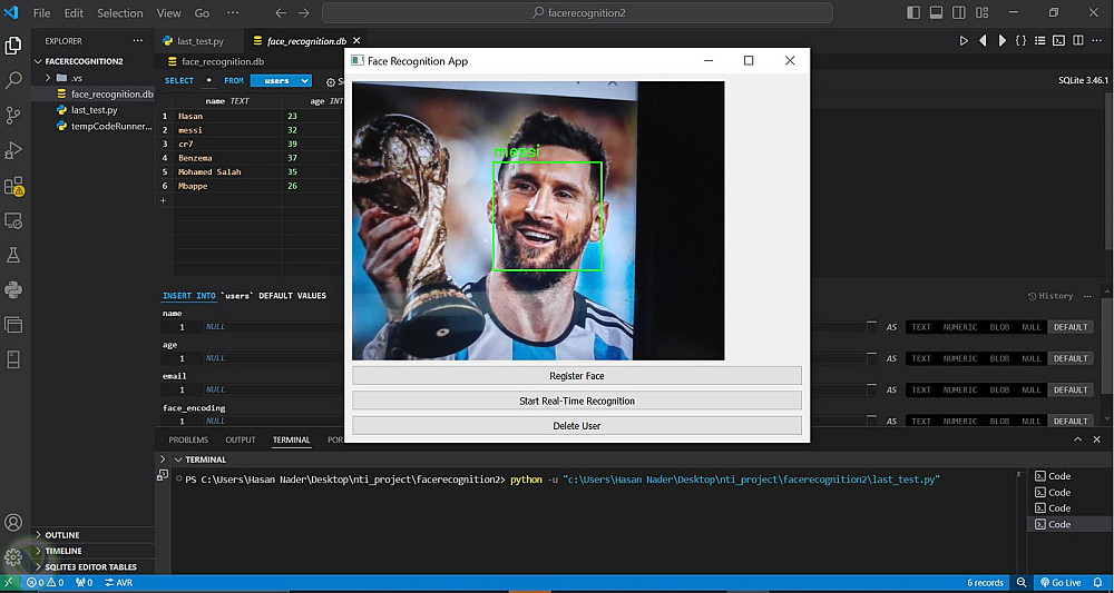 مشروع يعتمد على تقنية التعرف على الوجوه من خلال تحليل ملامح الوجه ومقارنتها للتعرف على الأشخاص. يهدف المشروع إلى توفير وسيلة ذكية وسريعة يمكن استخدامها في مجالات مثل الأمان، تسجيل الحضور، أو التحقق من الهوية