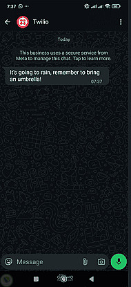 إرسال تنبيه تلقائي: عند توقع الأمطار، يتم إرسال رسالة SMS للمستخدم عبر Twilio API لتذكيره بإحضار مظلة.
