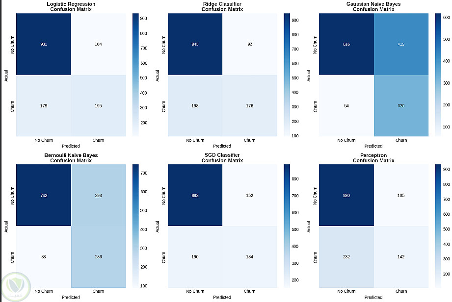 بعد ذلك تم بناء عدة نماذج Machine Learning للمقارنة بينها والتنبؤ بانسحاب العملاء مثل: