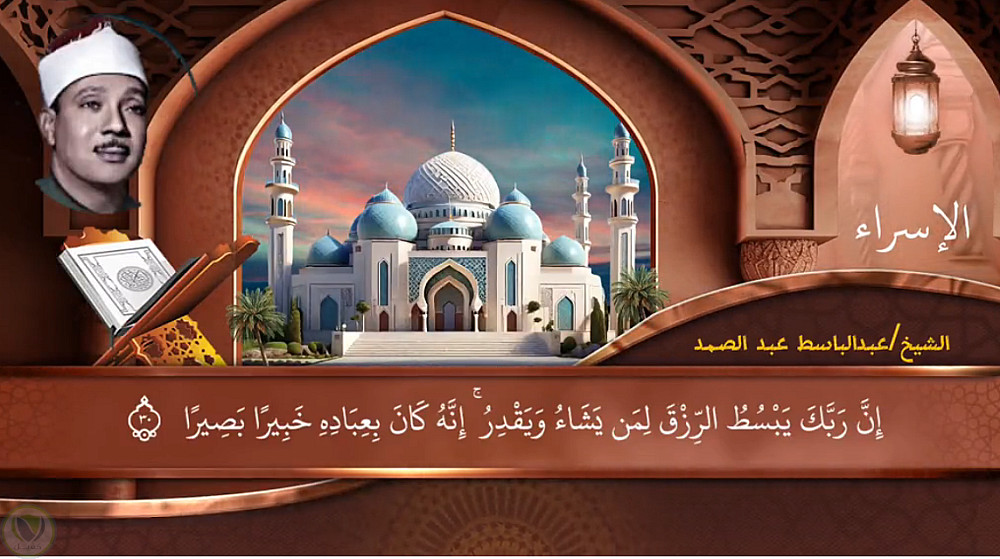 يتضمن الفيديو تصميم خلفية إسلامية تحتوي على مسجد بتصميم معماري جميل مع عناصر زخرفية إسلامية، بالإضافة إلى عرض الآيات القرآنية بشكل واضح وجذاب على الشاشة. كما تم دمج صورة القارئ مع عناصر بصرية مثل المصحف والفوانيس الإسلامية لإعطاء طابع روحاني مميز.