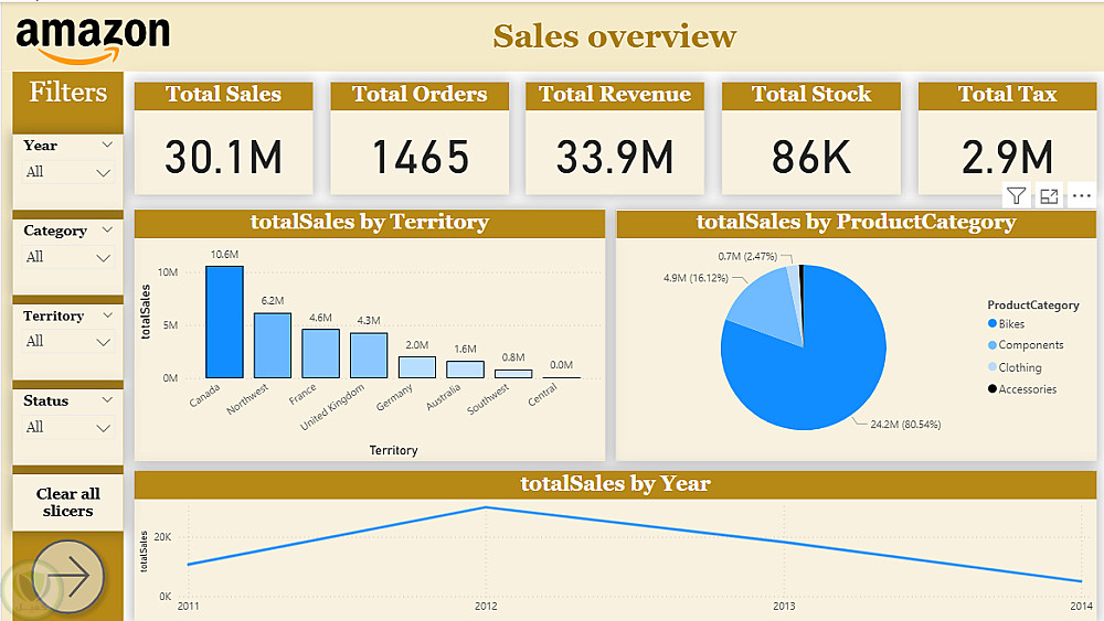 تحليل بيانات مبيعات أمازون حسب المنطقة، الفئة، والفترة الزمنية، بعد تنظيفها وتجهيزها للتحليل.