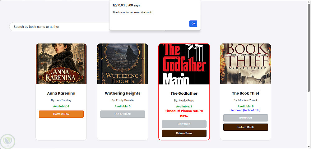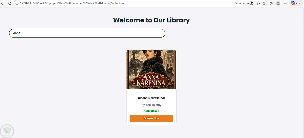 قمت بتطوير نظام متكامل لإدارة الكتب، يهدف إلى تسهيل عملية تنظيم استعارة الكتب وإدارتها للمسؤولين (Admin) والمستخدمين. المشروع يركز على تقديم تجربة مستخدم سلسة مع معالجة دقيقة للبيانات في المتصفح.