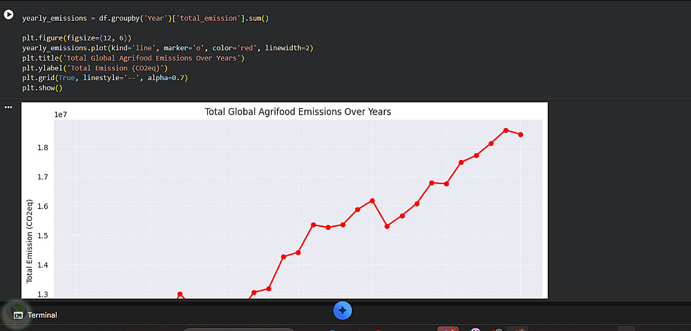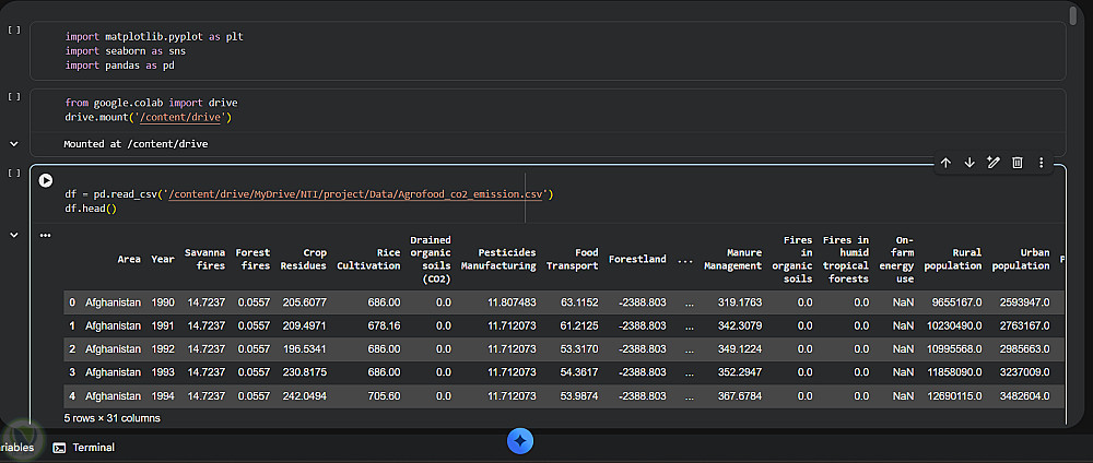 مشروع لتحليل والتنبؤ بانبعاثات ثاني أكسيد الكربون في القطاع الزراعي والغذائي باستخدام تقنيات تعلم الآلة.