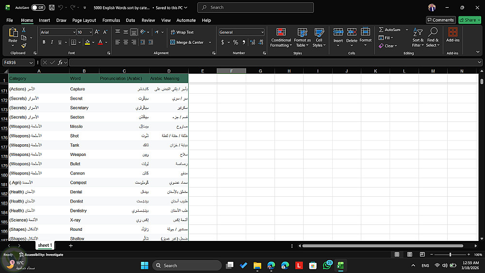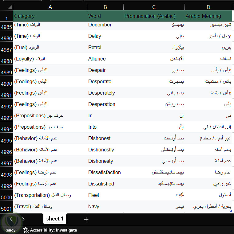 إنشاء قاعدة بيانات 5000 كلمة إنجليزية مع الترجمة والتصنيف