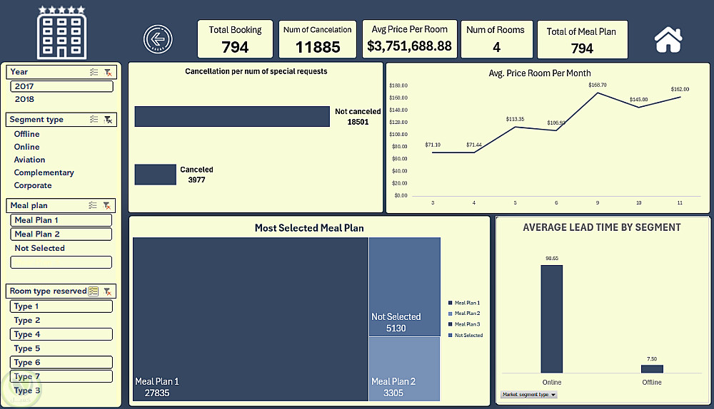 يهدف هذا المشروع إلى تحليل بيانات حجوزات الفنادق وعرضها من خلال Dashboard تفاعلي يساعد في فهم سلوك العملاء، وتحسين قرارات الإدارة.