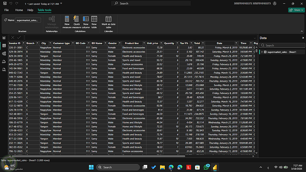 قدمت من خلال المشروع ده تحليل متكامل لبيانات مبيعات سوبر ماركت باستخدام Power BI، بهدف تحويل البيانات لرؤى واضحة تساعد في اتخاذ قرارات أفضل.