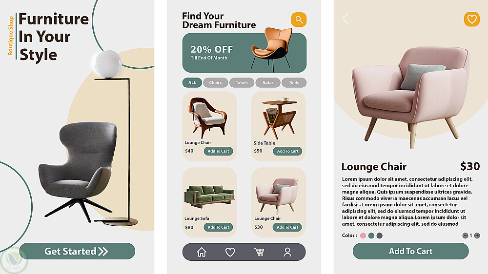 تصميم واجهه مستخدم ابليكشن لمعرض اثاث منزلي
