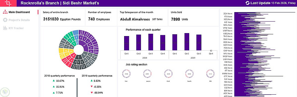 يهدف هذا الداشبورد الى الاجابة على الاسئلة التى يجب طرحها عند الرغبة فى معرفة تفاصيل عمل الفرع من انتاجيته الى اكثر الاصناف مبيعا