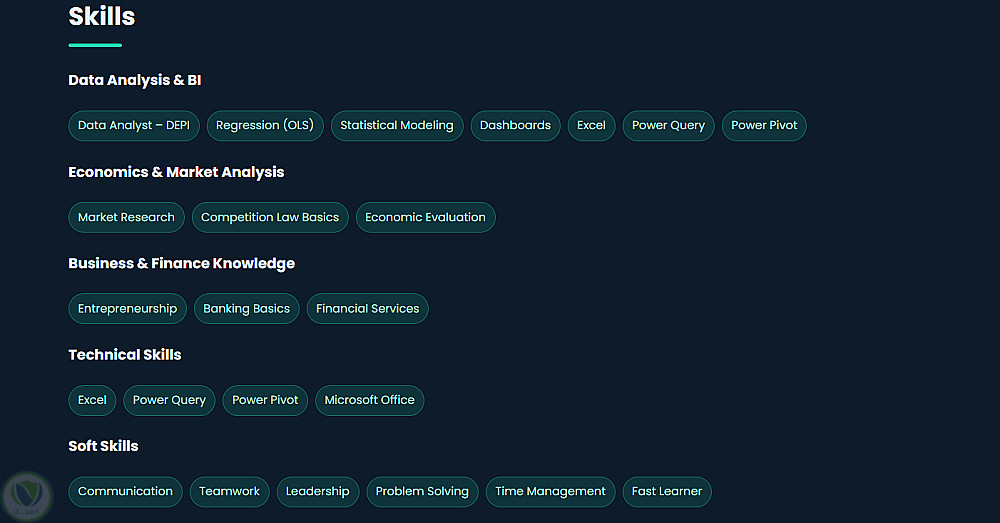 • صفحة Skills لعرض المهارات