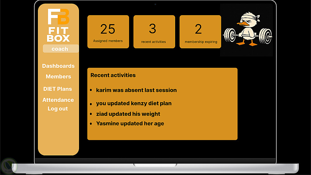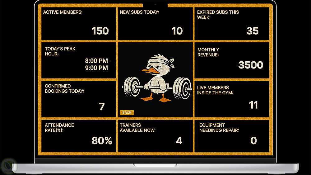 نظام تقارير: عرض إحصائيات سريعة حول أداء الصالة وعدد المشتركين النشطين.