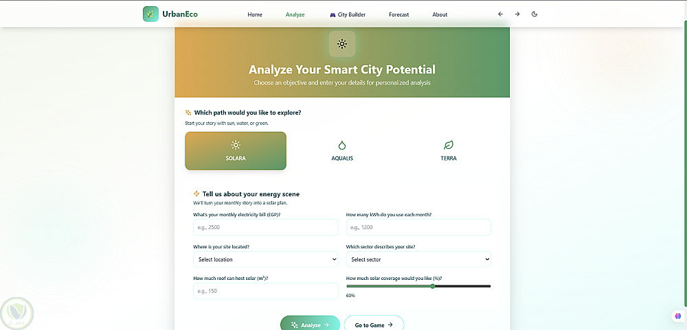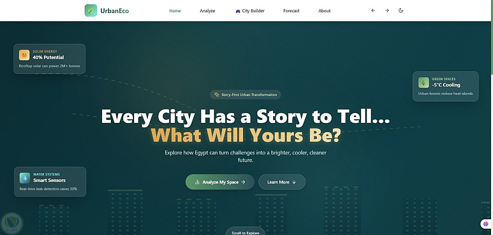 مشروع UrbanEco-Vision هو منصة متكاملة صممت لتمكين المدن من اتخاذ قرارات بيئية مدروسة بناءً على البيانات. الهدف الأساسي للمشروع هو تقديم "Insights" دقيقة من خلال لوحات تحكم تفاعلية (Interactive Dashboards) وتوقعات مستقبلية (Forecasting Tools) لدعم التنمية المستدامة.