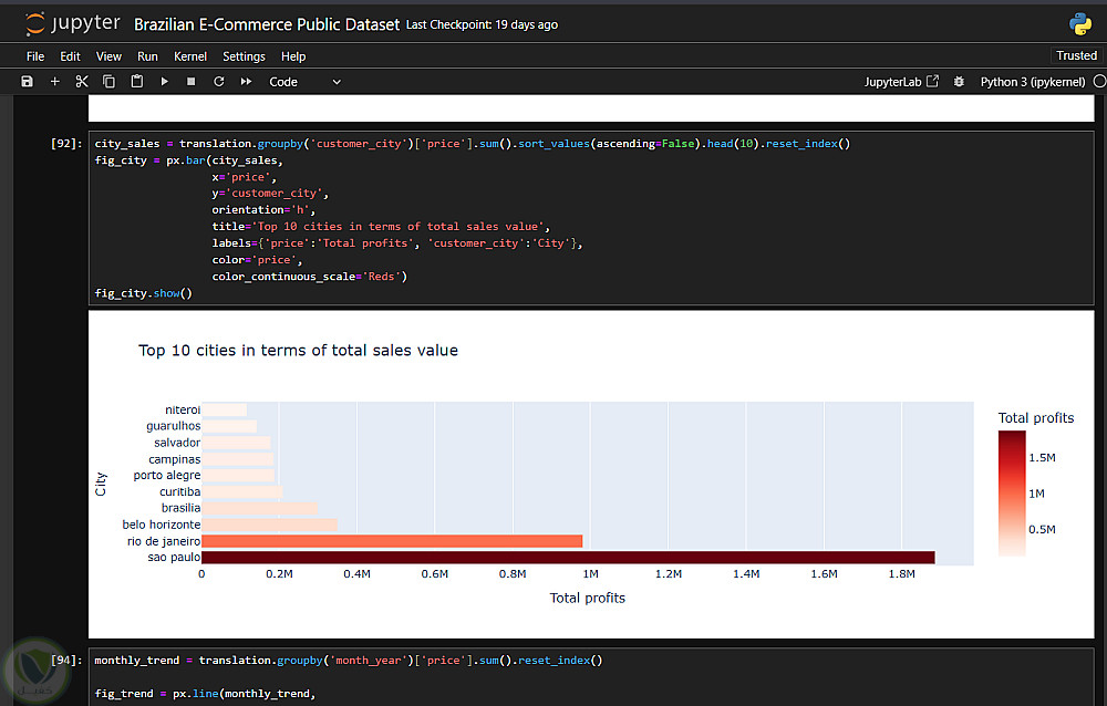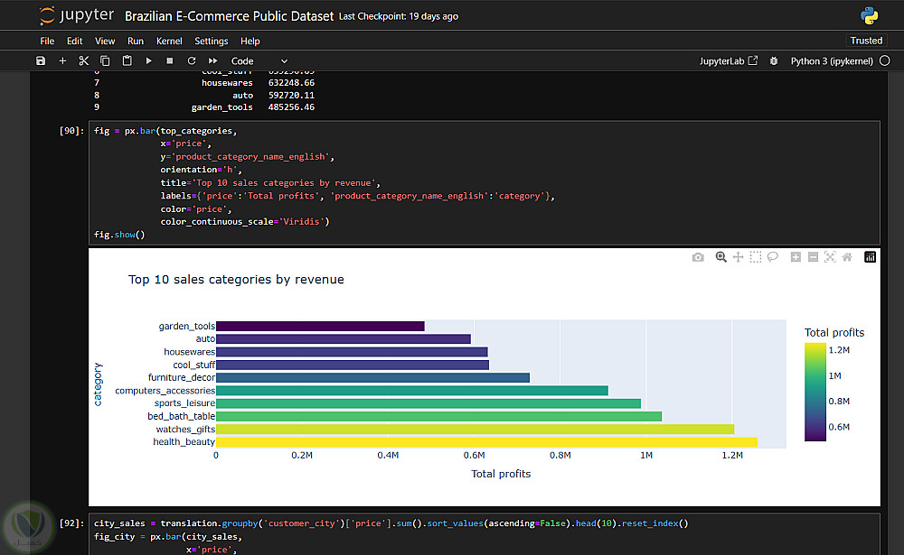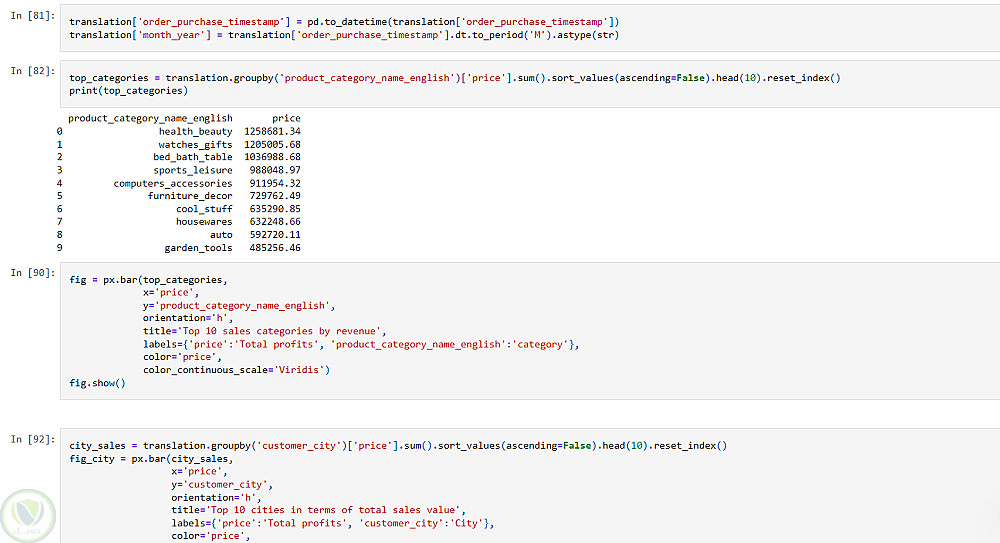 - استخرجت مؤشرات أداء رئيسية (KPIs) مثل أعلى فئات المنتجات مبيعاً وأكثر المدن شراءً.