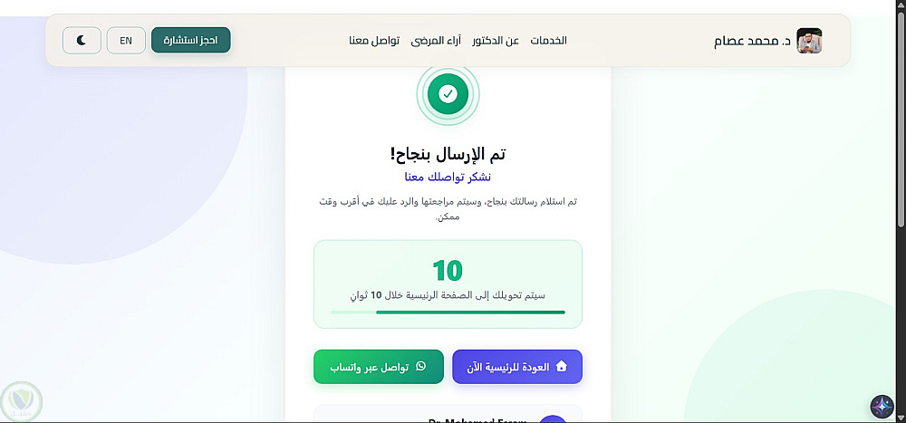 الصفحة الرئيسية مع عرض تعريفي بالطبيب