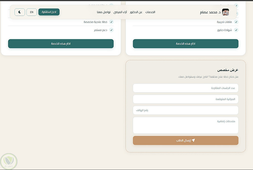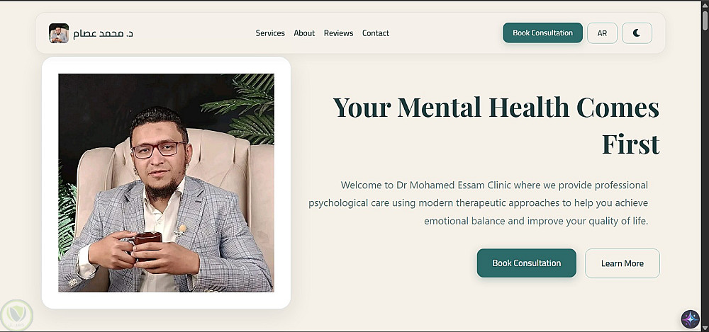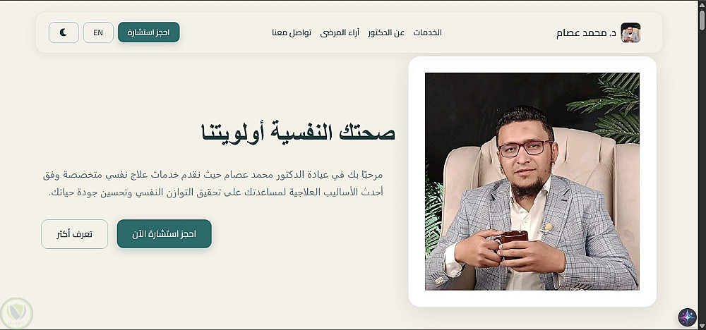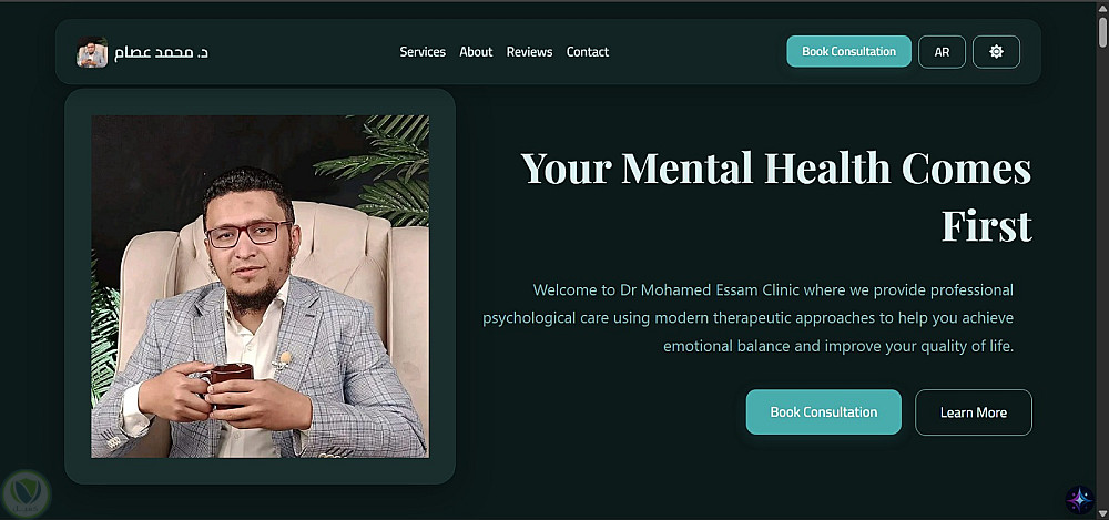 أنشأت موقعًا احترافيًا لعيادة طبيب نفسي باستخدام Angular مع تصميم حديث يركز على تجربة المستخدم وبناء الثقة مع المرضى.