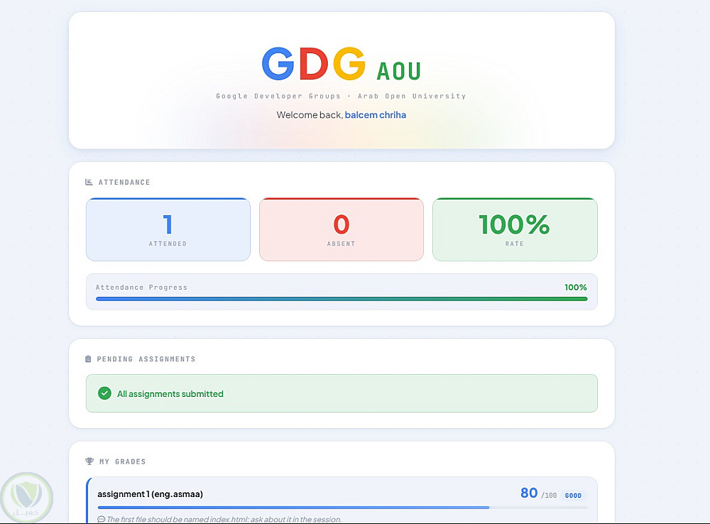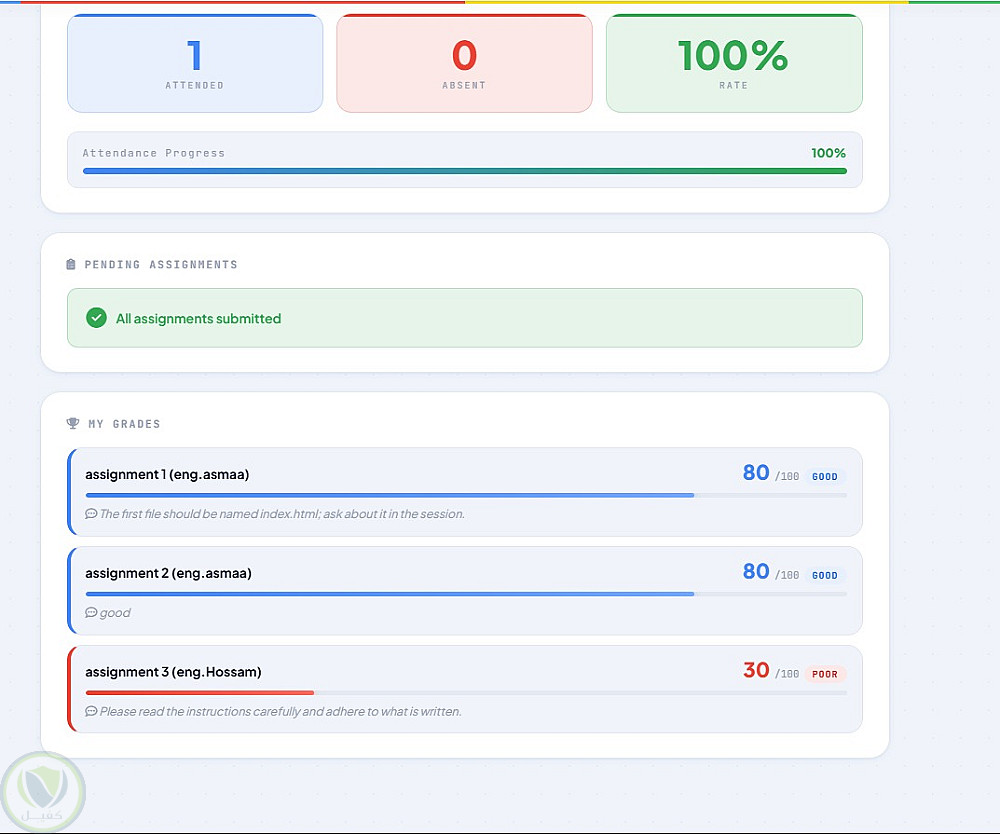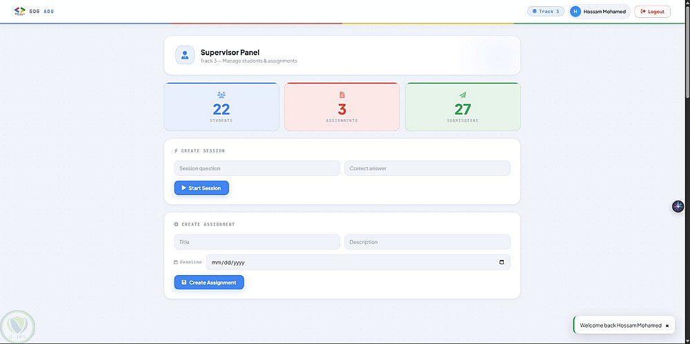 قمت بتطوير نظام ويب متكامل لإدارة طلاب المسارات التعليمية داخل المجتمع التقني، حيث يتيح النظام للمشرفين تنظيم الجلسات التعليمية وتتبع حضور الطلاب وإدارة الواجبات والدرجات بسهولة. يتيح النظام للطلاب تسجيل الدخول إلى حساباتهم ومتابعة حضورهم في الجلسات، وتسليم الواجبات عبر روابط مثل GitHub أو Google Drive، بالإضافة إلى إمكانية الاطلاع على الدرجات والتقييمات الخاصة بكل واجب. كما يحتوي النظام على آلية تحقق من البريد الإلكتروني باستخدام رمز تحقق (OTP) لضمان أمان الحسابات قبل تفعيلها. تم بناء النظام باستخدام تقنيات تطوير الويب الحديثة حيث تم تطوير الواجهة باستخدام HTML و CSS و JavaScript مع تصميم متجاوب يعمل على مختلف الأجهزة، بينما تم تطوير الجزء الخلفي باستخدام PHP وربطه بقاعدة بيانات MySQL لإدارة البيانات بشكل آمن باستخدام الاستعلامات المحضرة (Prepared Statements). يهدف هذا المشروع إلى توفير نظام بسيط وفعال لإدارة الطلاب والأنشطة التعليمية داخل المسارات التدريبية مع واجهة مستخدم حديثة وتجربة استخدام سلسة.