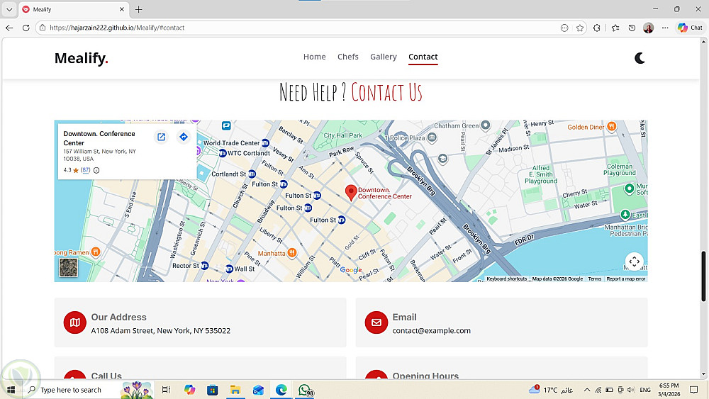 • قسم تواصل يحتوي على Google Maps مدمجة