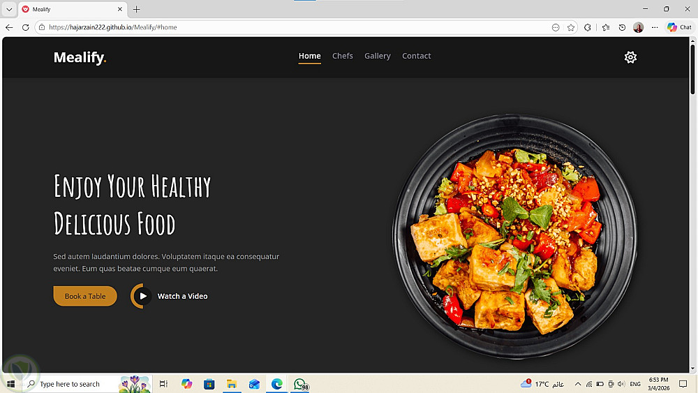 قمت بتصميم وتطوير Landing Page احترافية لمطعم بواجهة مستخدم حديثة ومتجاوبة، تهدف إلى عرض الخدمات والمنتجات بشكل جذاب وتحسين تجربة المستخدم على جميع الأجهزة.