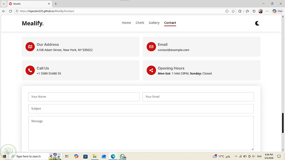 تصميم موقع مطعم احترافي Responsive مع Dark Mode وتجربة مستخدم مميزة