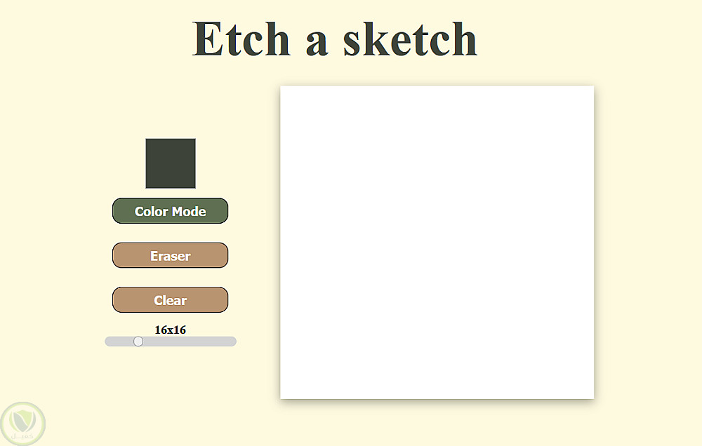 موقع يحاكي كراسة رسم فيه خاصية التلوين، المسح و تغيير مساحة المربع المستخدم.
