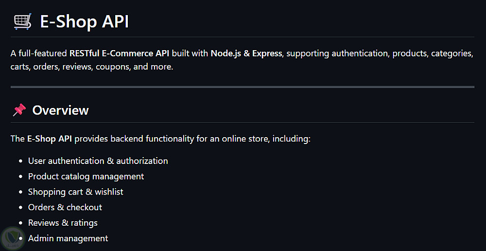 واجهة برمجة تطبيقات (API) متكاملة للتجارة الإلكترونية مبنية بأسلوب RESTful باستخدام Node.js و Express.