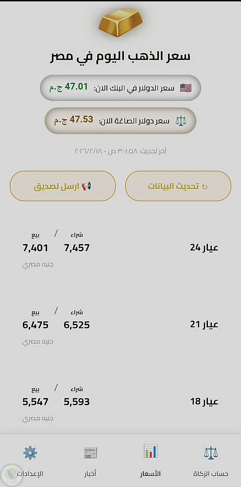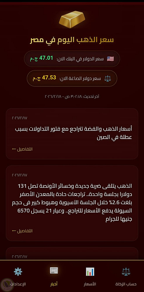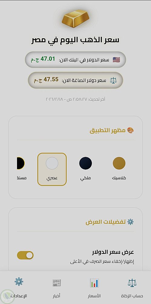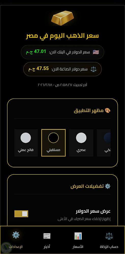 تطبيق اندرويد متقدم لعرض سعر الذهب الان في مصر